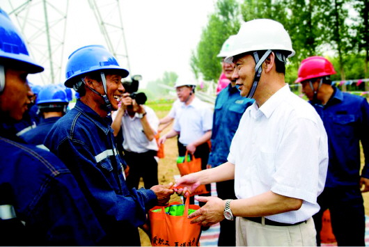 7日,滨州市总工会2015年“关爱职工 夏送清凉”系列活动启动仪式在大唐滨州发电有限公司建设工地举行。市委常委、市总工会主席魏克田同志率领市总工会常务副主席耿庆东及市总全体班子成员先后走访慰问职工430余名,将水杯、毛巾、茶叶、洗衣液等价值4.3万余元的降温防暑用品发放到他们手中。 本报通讯员 李盛 本报记者 郗运红 摄影报道