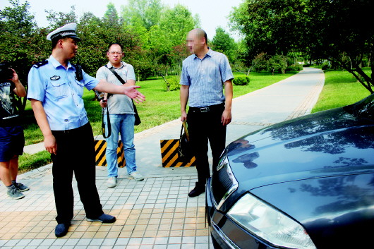 交警对违规停车车主进行处罚教育。 本报记者 杜雅楠 摄