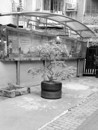 时间:2015年5月16日 自述:废弃的汽车轮胎,改造成一个小型花坛,种些花花草草,改善小区的绿化环境,真是不错的主意。 点评:我只想问一句,浇水的时候……漏么?