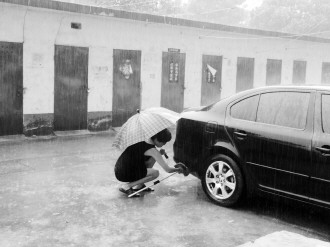 时间:2015年6月24日 自述:借雨水洗车,不光是省钱,还很省工夫哦! 点评:其实根据小编的经验,这场雨过后车的下半部分肯定还会有很多溅起来的泥点,估计还得再刷一遍。
