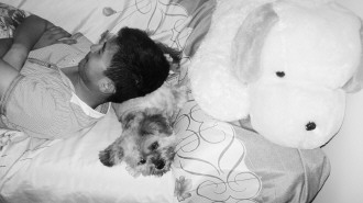 时间:2015年6月3日 自述:还是毛茸茸肉嘟嘟的活物,枕起来舒服。 点评:被枕着的狗狗在想:真讨厌,放着旁边那个布偶狗不枕非枕我,它的工资给我拿来!