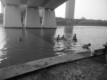 12日,有不少市民在岔河桥下游泳乘凉。 徐良 摄