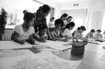 7月11日,在东港区济南路社区服务中心,二十余位市民正在学习日照农民画。这是东港区文体新局近期开展的文体公共培训的一部分。