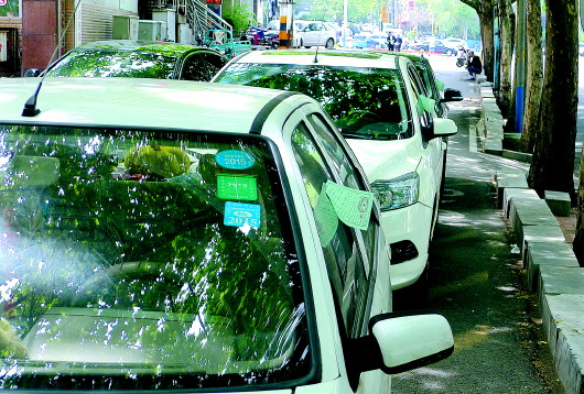 ▲市区停车难越来越突出,有的车主不得不违法停车。(资料片) 本报记者 周青先 摄