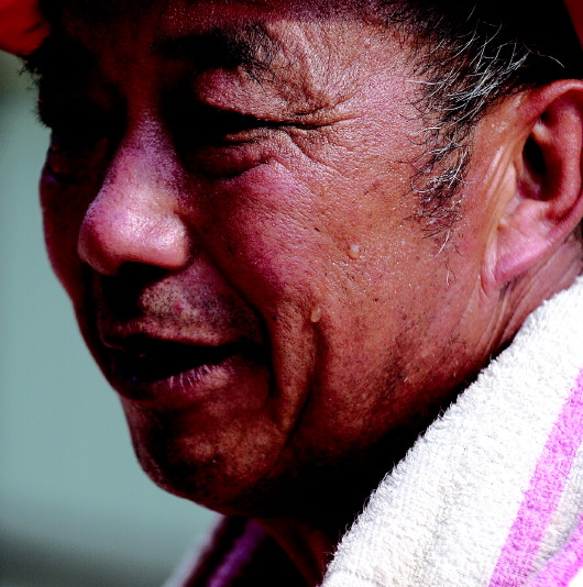13日下午3点左右,解放路道路管道施工工地,来自济南郊区的一群建筑工人在高温中继续操劳,豆大的汗珠挂在脸上。本报记者 周青先 实习生 刘海天 摄