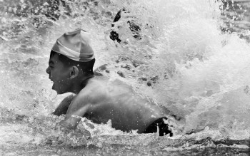 天气炎热,一名小朋友在水中嬉戏。 本报记者 张晓科 摄