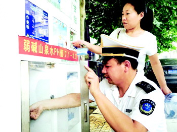 刘德喜告诉记者,目前要求主管自助售水机的公司每月都对现售饮水机进行自检。自检项目包括色、浊度、肉眼可见物、ph值、电导率、溶解性总固体、细菌总数等指标。