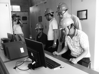 工作人员正在操作电脑,控制水泵的工作。本报记者 孙国祥 摄
