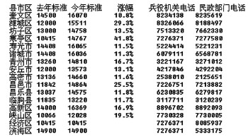 本报7月13日讯(记者 王琳)13日,记者从市征兵办获悉,目前潍坊市各县市区义务兵家庭优待金发放标准公布,与去年相比,除滨海、经济两区与去年持平外,其他县市区发放标准均有不同程度增长,其中寒亭、潍城两区涨幅居前两位。按照要求,义务兵家庭优待金须于8月1日前全部发放完毕。