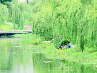 12日上午,几名放了暑假的学生在西沙河边的柳荫下进行垂钓,既找到了亲近大自然的乐趣,又不会受到烈日的伤害,似乎是找到了大热天里一种极佳的休闲方式。 本报记者 袁鹏 摄影报道