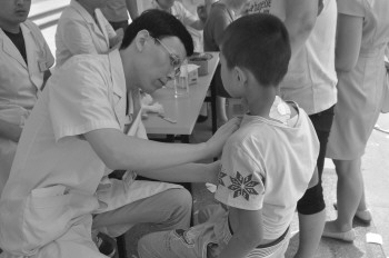 初伏第一天成千市民扎堆贴敷。 本报记者 王尚磊 通讯员 张建新 摄