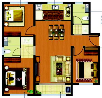 约95~105□三房,满足不同家庭结构需求。明厨、明厅、明卫,全明户型保证充足采光。户型方正、南北通透,保证通风。三面宽朝阳,开放式的客餐厅设计、干湿分离的卫浴设计、动静分离的厅卧设计让您的居住更加舒心。