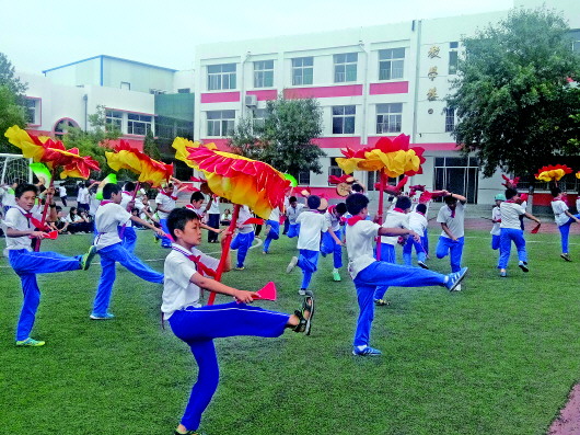 每年的六一儿童节、小学生艺术节、教师节和各重大节日和纪念日,学校会组织开展相关的艺术教育活动,学生全员参与,自己组织、自己排练。每周举办的升旗仪式,学校会给每个班级设定主题,有班级自己组织、自己排练,以此来锻炼学生们的自主、团结协作的能力。