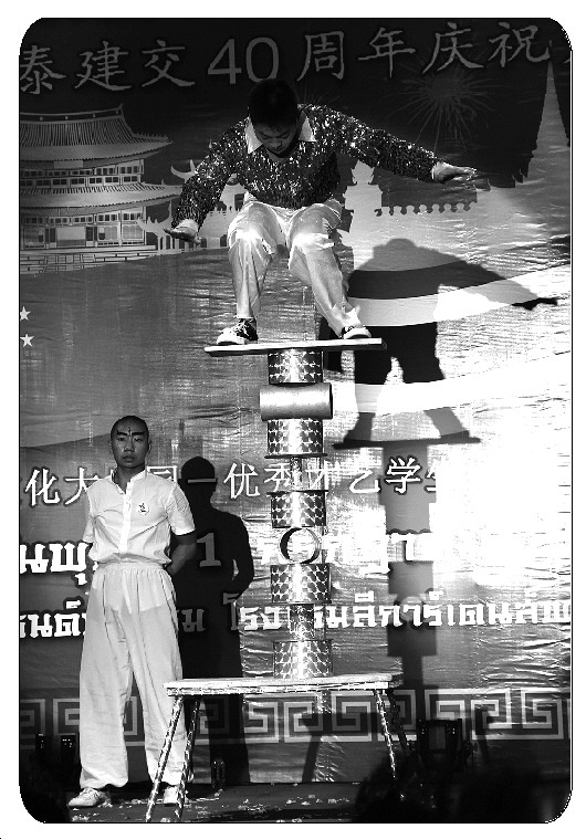 图片一:6月12日欢迎晚宴 图片二:扇子舞 图片三:9个钢管,新的世界纪录