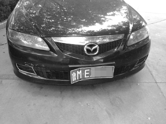 轿车车牌原来有点翘,现在有点弯。见习记者 马雯雯 摄