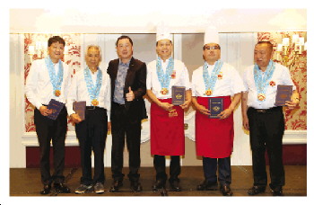 益海嘉里食品营销有限公司总经理陈波向获得国际烹饪中餐大赛五钻金奖的烹饪大师颁奖