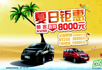 为了回馈消费者一直以来的关注和支持,6月1日起至8月31日,凡购买郑州日产旗下帅客或NISSAN NV200国四车型,即可参与“夏日钜惠直降8000元”活动。