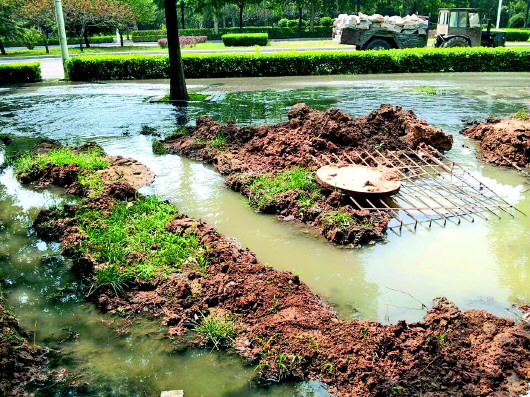 本报7月16日讯(见习记者 赵红 记者 张帅) 近日,家住齐鲁工业大学附近的裴先生向本报反映,大学城内海棠路与瓦特路交叉口附近,有一处污水外溢横流,弄得周围臭气熏天。“每年夏天都会出现这种情况,问题迟迟无法解决,对附近居民和在校学生影响很大。”裴先生说,他们希望相关部门能够出面彻底解决问题。