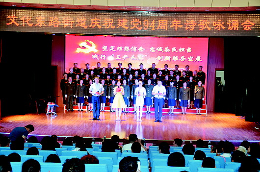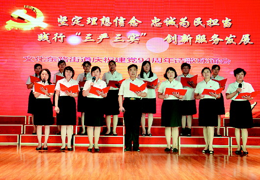 6月30日,为庆祝建党94周年,文东街道举行了诗歌咏诵会,激励各基层党组织和广大党员干部更好地发挥战斗堡垒和先锋模范作用。