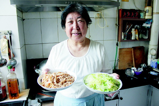 说起做菜,胥小莉有很多话要说。如今她已经是两个孩子的奶奶,为了让孩子们多吃几口饭,她常常会研究一些新菜式。她告诉记者,她做的凉拌杏鲍菇是家人最爱的夏日菜之一。