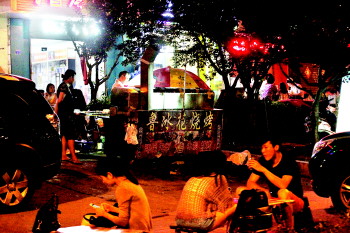 16日,崂山城管麦岛中队队长姜丰森介绍,最近半个月,中韩街道范围内的3个执法中队,每晚都组织10余名执法人员夜查,并有6名工人和1辆货车跟随。“香港东路那几家饭店是整治重点,每天晚上都去查,发现占路经营就暂扣占路物品,用环保炉具占路也会被查。”姜丰森说,执法人员每晚“如期而至”,使得不少饭店减少违法经营行为,让出了人行道。日前,该中队已召集多家饭店商户并下达相关通知,要求饭店负责人不得占路经营、不得烧烤扰民。“除了对饭店进行规范外,任何无证摊贩、野烧烤都将被依法取缔。”姜丰森称,根据前期查处的情况,野烧烤摊上的肉类及其他食品来源都无从查明,市民应到正规饭店就餐。
