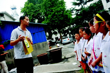 16日早上,每位小报童都领到了方便实用的防暑小药盒。为让小报童健康安心卖报,淄博漱玉平民大药房精心准备了防暑药品,包含藿香正气液、风油精、花露水等。淄博漱玉平民大药房负责人秉楠(左一)介绍,小报童可以到漱玉的各个药店乘凉喝水。 本报记者 王鸿哲 摄影报道