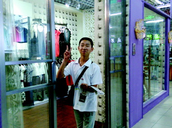16日清早,曹宸 在张店华光路附近的早点摊推销报纸。一位市民拿出5元钱要买一份报。曹宸 急忙去拉斜背着的黑色小包找零钱,没想到拉链一时卡住了拉不开。那位市民见状,笑着说:“没事,不用找了。学生暑期实践不容易。”曹宸 说什么也不答应,费了半天劲,终于拉开了拉链,坚持找了那位市民4元5角钱。“哪能多收钱啊?咱们必须得讲原则。”曹宸 的爸爸非常支持孩子的做法。
