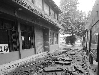 16日中午,位于市中区君山中路的一家复印店门头上的瓦片,突然成片脱落,吓坏了附近等公交的市民。幸好没有行人经过,未有人员受伤。据了解,瓦片脱落可能和近日以来连续的降雨有关。 本报记者 袁鹏 摄影报道