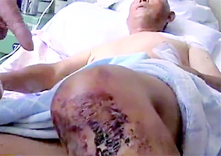 20日,当记者在医院见到躺在病床上的两位老人时,因为受伤过重,也可能因精神受到刺激,他们还都不便说话。老人的儿子介绍了父母勇斗歹徒的经过。
