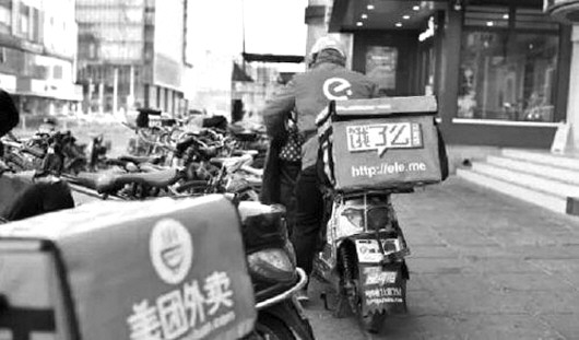 街上随处可见美团外卖和饿了么的外卖员。 (资料片)