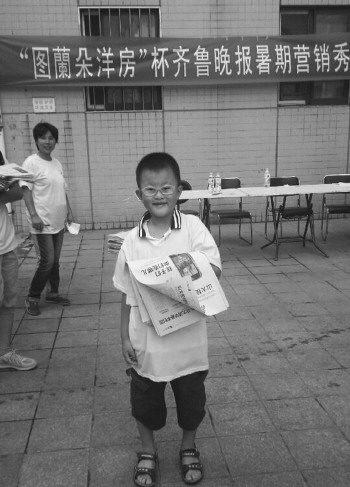 李冠宏说,他平时除了学习没有太多其他的实践活动,参加营销秀感到很新奇,另外还可以通过卖报锻炼一下自己。李冠宏告诉记者,他平时不大爱说话,出去的时候也会粘着爸爸妈妈,爸爸妈妈经常告诉他作为男子汉要活泼开朗一点。