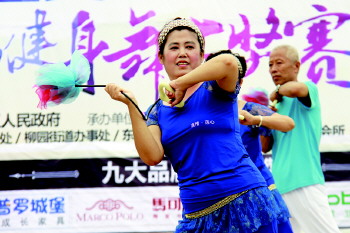 18日早晨6点多,就有许多健身舞参赛队员提前来到人民广场开始现场排练,他们穿上统一的服装,非常抢眼。在参赛人员当中,有在职教师、有退休工人,也有赋闲在家的老人,有70多岁的老人,他们都在为这次比赛做准备。