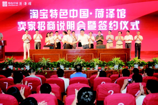 本报菏泽7月20日讯(记者 邓兴宇) 20日上午,菏泽市淘宝特色中国·菏泽馆卖家招商说明会暨签约仪式在牡丹区政府办公大楼西会堂举行,菏泽各县区电商企业代表400余人参加了会议,106家淘宝卖家现场签约。另据了解,截至目前菏泽已有194家淘宝卖家签约淘宝特色中国·菏泽馆。