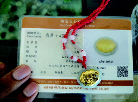 张先生说,自买了这块玉后,其朋友便将它戴在身上,可是大约过了3天,镶嵌在这块玉上的一金块莫名脱落。