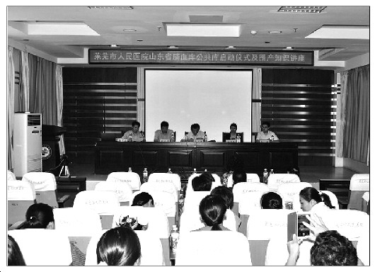 本报7月20日讯 (记者 于鹏飞 通讯员 常永亮 马军 徐雯雯) 18日上午,莱芜市人民医院山东省脐血库公共库启动仪式及围产知识讲座顺利举行。