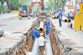 20日,在市区花园南路(统一路和古陌路路段),威海热电集团工作人员对该路段管道进行更新。据工作人员介绍,该路段管道将由原来直径250mm更换成直径350mm。整个花园南路的老旧供暖管道将全部进行更换,施工分为4个阶段进行,预计工期20天。