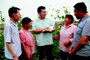 纪委工作人员(中)深入田间地头摸排线索。(资料片)