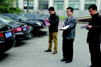 纪委工作人员对节假日公车定点存放情况进行监督检查。(资料片)