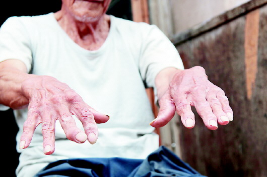 看着墙上立着的镰刀、耙子、镐、铁锨,刘凤土说:“15年来每年都会用坏一把铁锨,镰刀也坏过,都不知道丢了多少把,双手都变扭曲了,才几个月的光景,什么东西一不用就生了锈,没有用了。”站在村子里的生产路上,刘凤土应该是欣喜的,但是老人有几丝失落,他依旧希望手里的工具亮起来,不想它们再也没有用武之地。