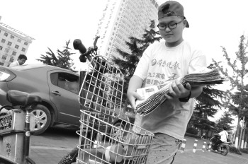 本报济宁7月21日讯(记者 于伟 实习生 杨男 李晓阳 张馨) 21日,参加本报“九龙家电杯”暑期营销秀的小选手们上街卖报。选手们起个大早来领报纸、分报纸,然后走向大街小巷,迈出暑期实践的第一步。