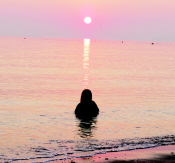 情景描述:大热天的,泡在水里赏夕阳,太恣儿了。