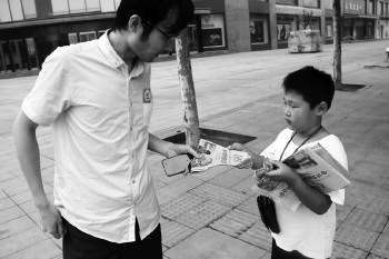 “叔叔,买份报纸吧!”21日一早,在兴华路一家快餐店门口,两名小报童在门口热情推荐。一大一小两位报童结成“互助小组”,在爸妈不能跟随的时候,帮对方看报纸,大的照顾小的,这样的组合在第二期暑期营销秀中很常见。