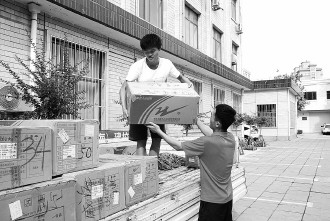 近日,哈工大(威海)履行实践队在搬运捐赠的第二批爱心鞋,这些鞋将寄往甘肃省定西市通渭县北城铺乡。据了解,哈工大爱心团队共为渭县北城铺乡的孩子们寄去了249双运动鞋。