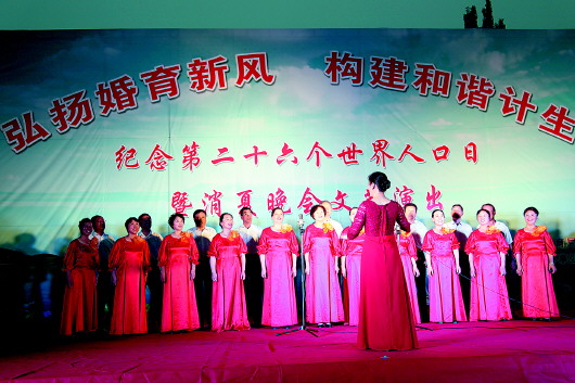 本报讯(记者 林媛媛 通讯员 刘亚男) 7月10日晚,为纪念第二十六个世界人口日的到来,由历下区人口和计划生育委员会、甸柳新村街道办事处共同举办的“弘扬婚育新风 构建和谐计生”文艺演出活动在历下文化广场举行,来自咱们社区的精彩节目吸引了数百位居民前来观看。