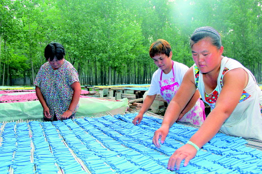 村里村外、房前屋后,一排排五颜六色的粉笔架子就像一道道绚丽的彩虹,把郓城县潘渡镇冯店村装扮得十分美丽壮观。据了解,冯店村积极发展一村一品,把传统小手工粉笔做成大产业,走出了一条集加工、印刷、销售、运输一条龙发展模式,实现了村民家门口的增收梦。