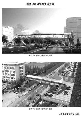 本报7月23日讯(记者 张萍) 23日,记者从相关部门获悉,威海路人行天桥开工了,天桥的设计打通了新营华府小区和新营小学,避免了学生穿梭马路所带来的安全隐患,预计工期为90天。