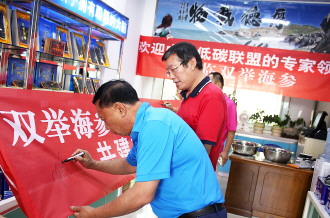 ▲中国低碳行动联盟的领导在双举海参店参观。