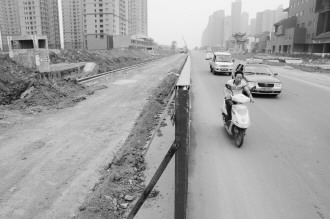 23日,施工人员正对市中区龙头西路自西昌路路口往西进行半封闭修整,工程造成部分路面被占用,并进行了隔离,提醒市民经过时小心行驶。 本报记者 袁鹏 摄影报道