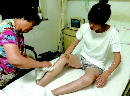 ◤26日晚,擦伤的陈女士在医院接受治疗。 本报记者 摄