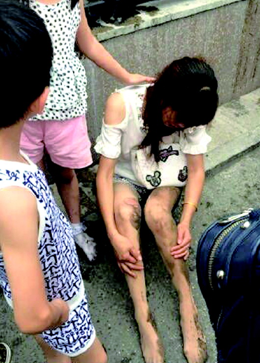 ▲网友爆料的现场图片,陈女士下半身都是污泥。